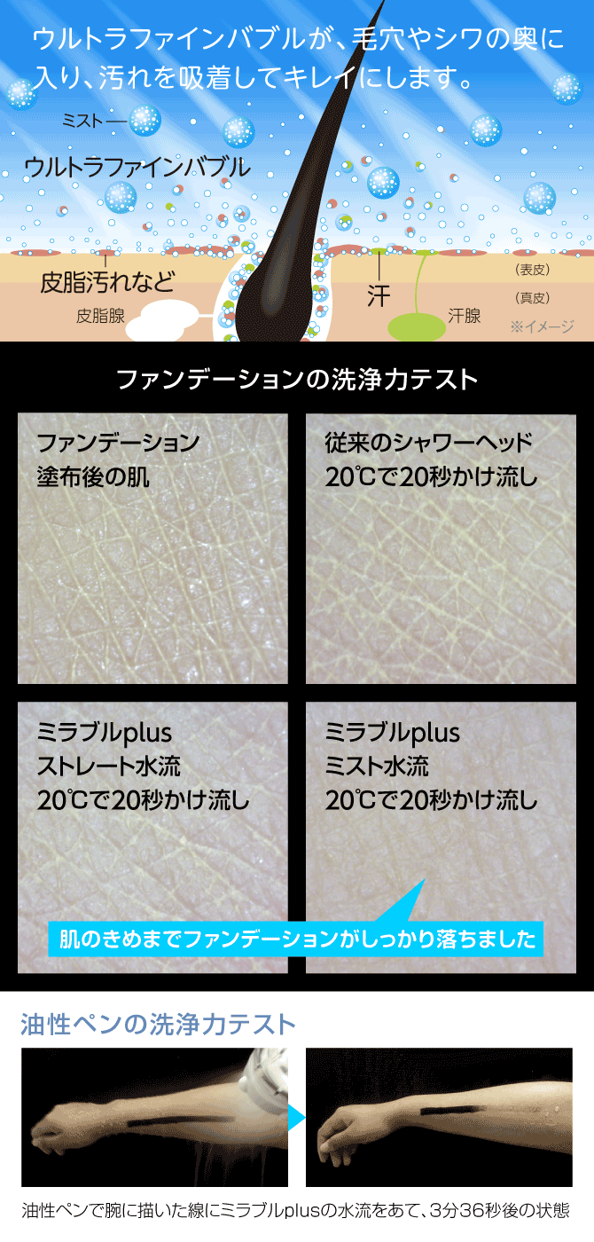 鼻の黒いツブツブが 消えて つるつる美肌になった、 油性ペンがこすらず落ちた、 という理由はこの バブルのサイズにあります。