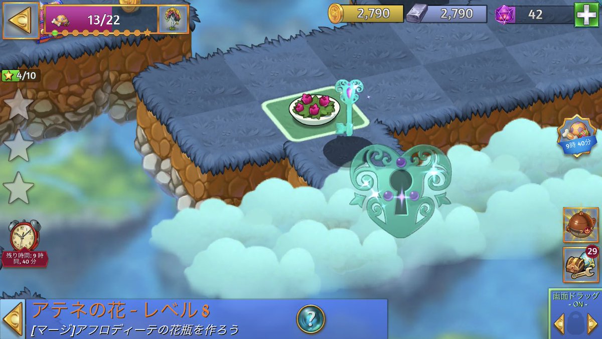 10画面の左に縦に星が3つ 並んでいるのでタップして クエストの内容を確認していこう! クエストの内容は• ・土地を浄化する 土地350マス浄化する 未浄化の地のアイテムをマージするか、をタップすることで浄化される。