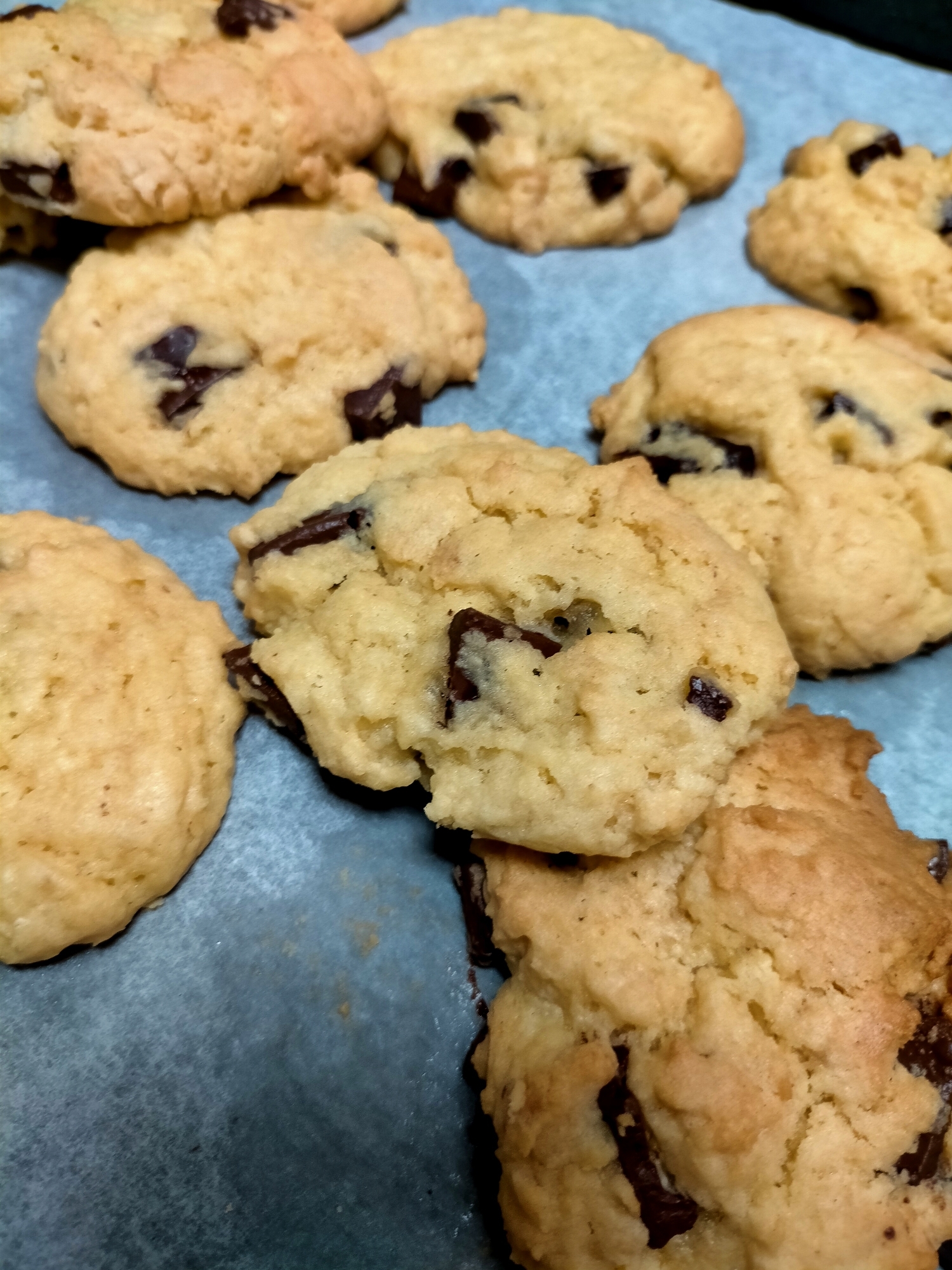 その為には時間をしっかり計りましょう。 アメリカンチョコチップクッキーを作ってみよう! 溶かしバターを使っているのでバターを練ったり卵を泡だてだりする必要がなく、ボールとホイッパーさえあれば材料を混ぜていくだけでOK、ワンボールでできて生地を寝かす必要もない簡単なクッキーです。 モールに行くのが楽しみで、どこのモールにも必ずといっていいほどあるクッキーやさんに並ぶ数々の大判の焼きたてアメリカンクッキーを見てカルチャーショックを受けました。