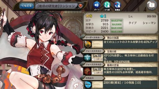 ・クリコレ限定• 先制を持つため、耐性を持たない敵のFSの使用をほぼ確実に妨害できます。 クリティカル時は2000行く時があります。