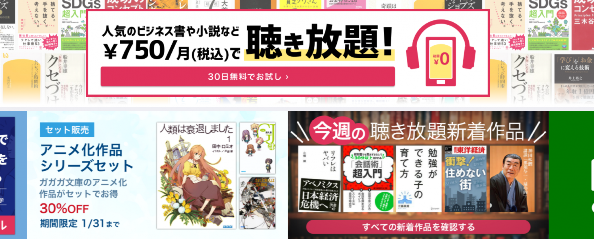 オーディオブックだと今までなかなか読まなかった本も、読むよりも速く聴けてスイスイ読破できるので楽しくなりますよ。